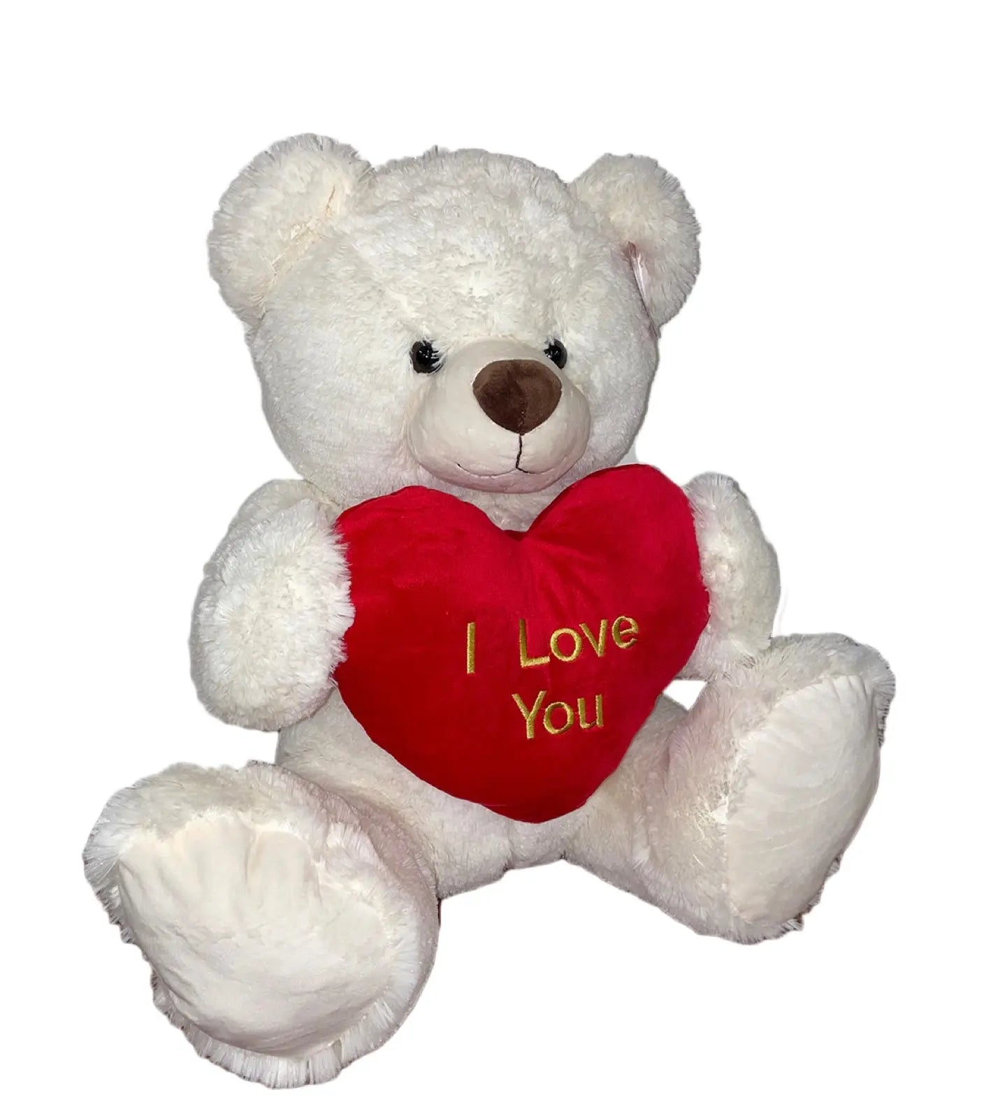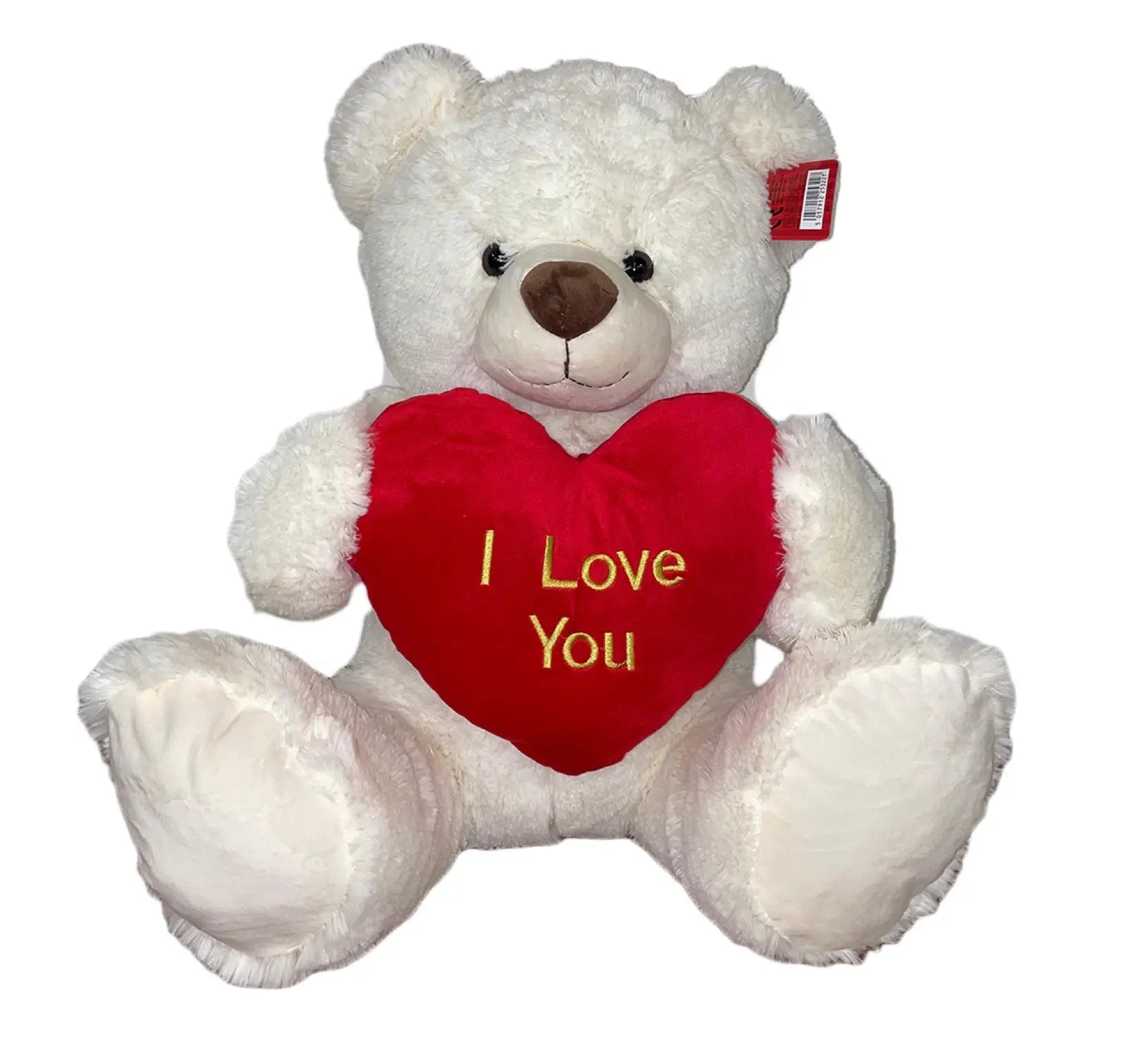 • A lovely soft and cuddly 60cm white teddy bear holding a heart with "I love you" inscribed on it.