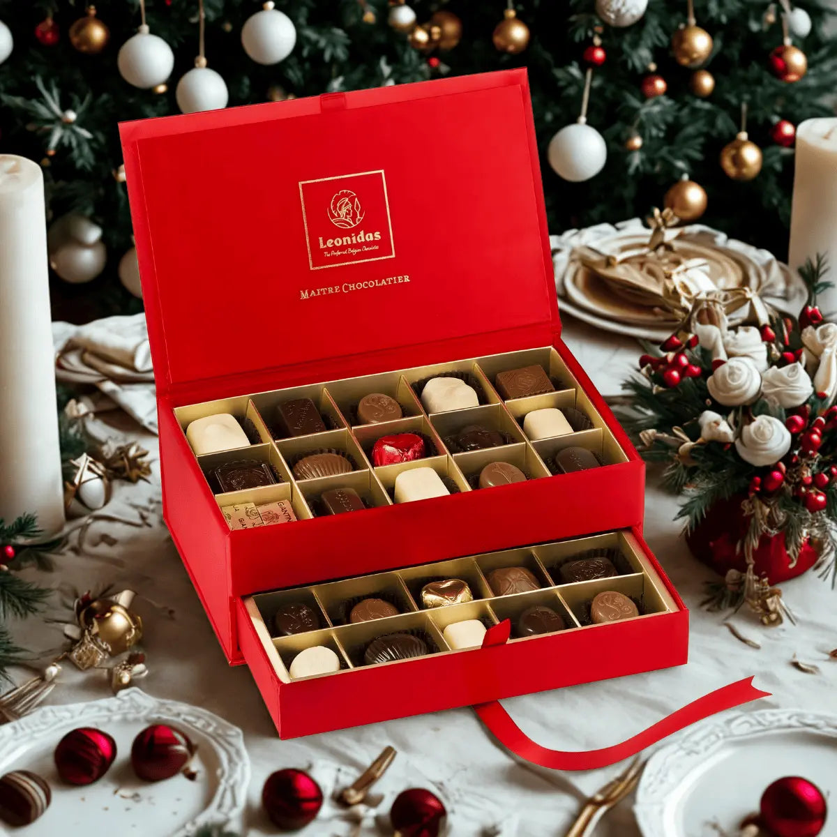 Indulgence meets elegance in theΒ Leonidas Red Silk Jewellery Box, a breath-taking collection of 30 luxury Belgian chocolates presented in a sumptuous, silk-style keepsake box. Every praline is an artisanal masterpiece crafted with sustainable cacao, 100% cocoa butter, and no palm oil, honouring Leonidas’ unparalleled chocolate heritage since 1913.